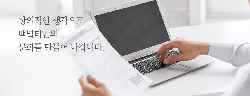 회사 및 개인의 발전을 위한 자유롭고 편안한 아이디어 나눔의 시간입니다. 근무환경 개선에서부터 신제품 Idea까지 작은 것부터 그 어떤 것이라도 가능합니다. Small Big Campaign을 통해 맥널티 개개인의 삶과 회사의 발전을 가져올 수 있는 모든 다양한 생각을 발굴하고 있습니다.